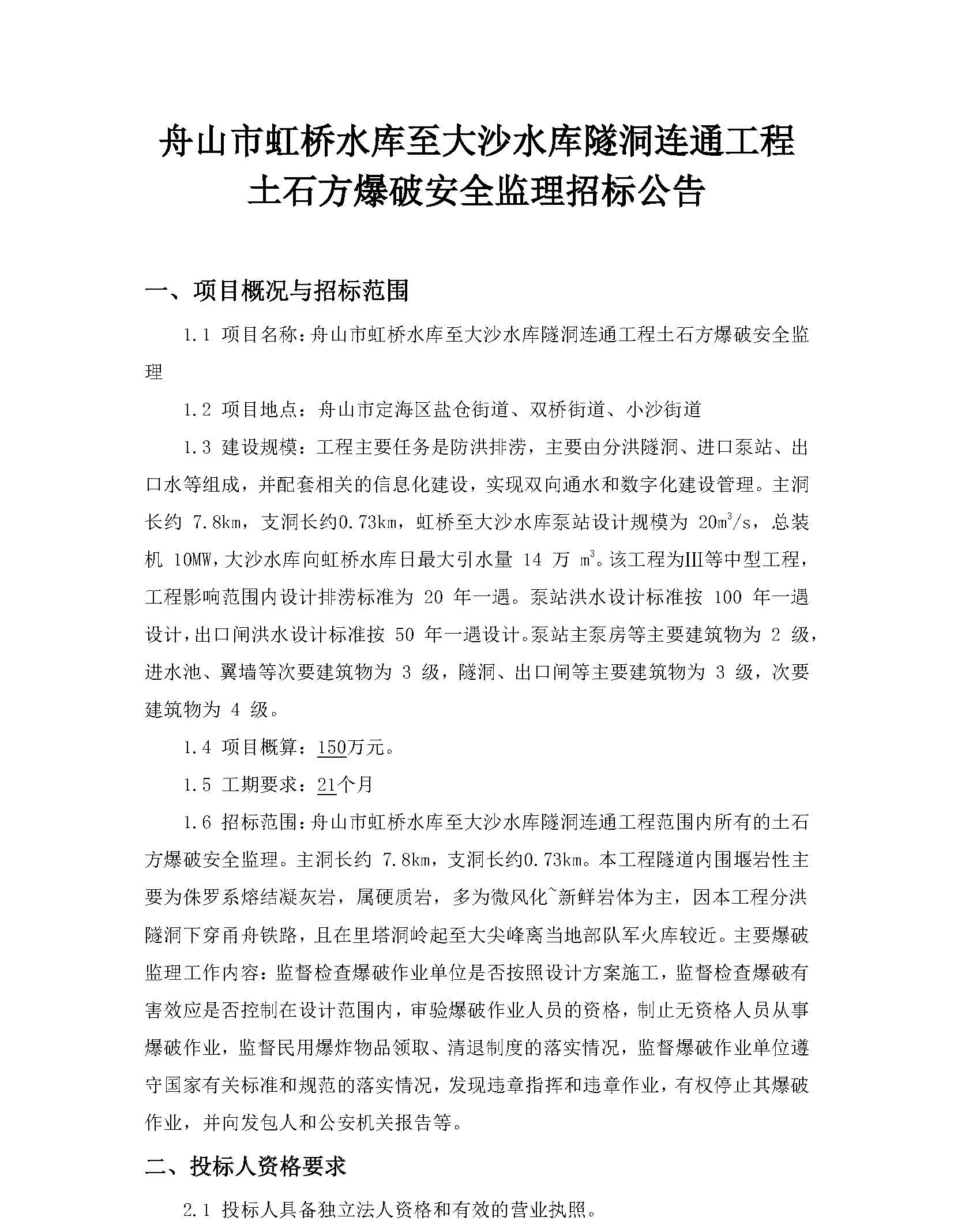 上一篇:舟山市虹橋水庫至大沙水庫隧洞連通工程土石方爆破安全監(jiān)理招標(biāo)中標(biāo)侯選人公示